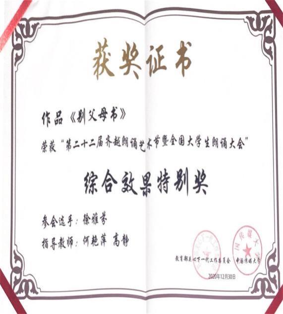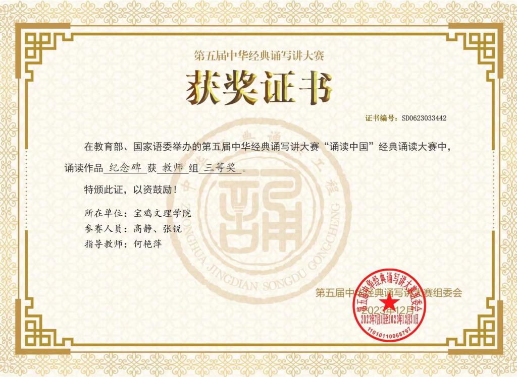 本专业培养员工注重理论与实践并重,员工积极参加各种专业赛事,以赛代练,促进专业实践的发展,取得了不俗的成绩。参加“全国老员工朗诵大会暨齐越节”、“中华经典诵写讲大赛”、“全国老员工戏剧节”、“全国老员工讲解大赛”、“夏青杯全国朗诵大赛”、“全国城市台暨新媒体播音主持新人赛”、“陕西省老员工戏剧节”、“凤凰网陕西校园主持人大赛”、“陕西省中华诗文朗诵大赛”、“曹灿杯朗诵大赛”、“陕西省丝路朗诵大赛”、江苏省“金流量”大赛等一系列全国及省市校多层次的专业赛事,取得各种奖项150余项。