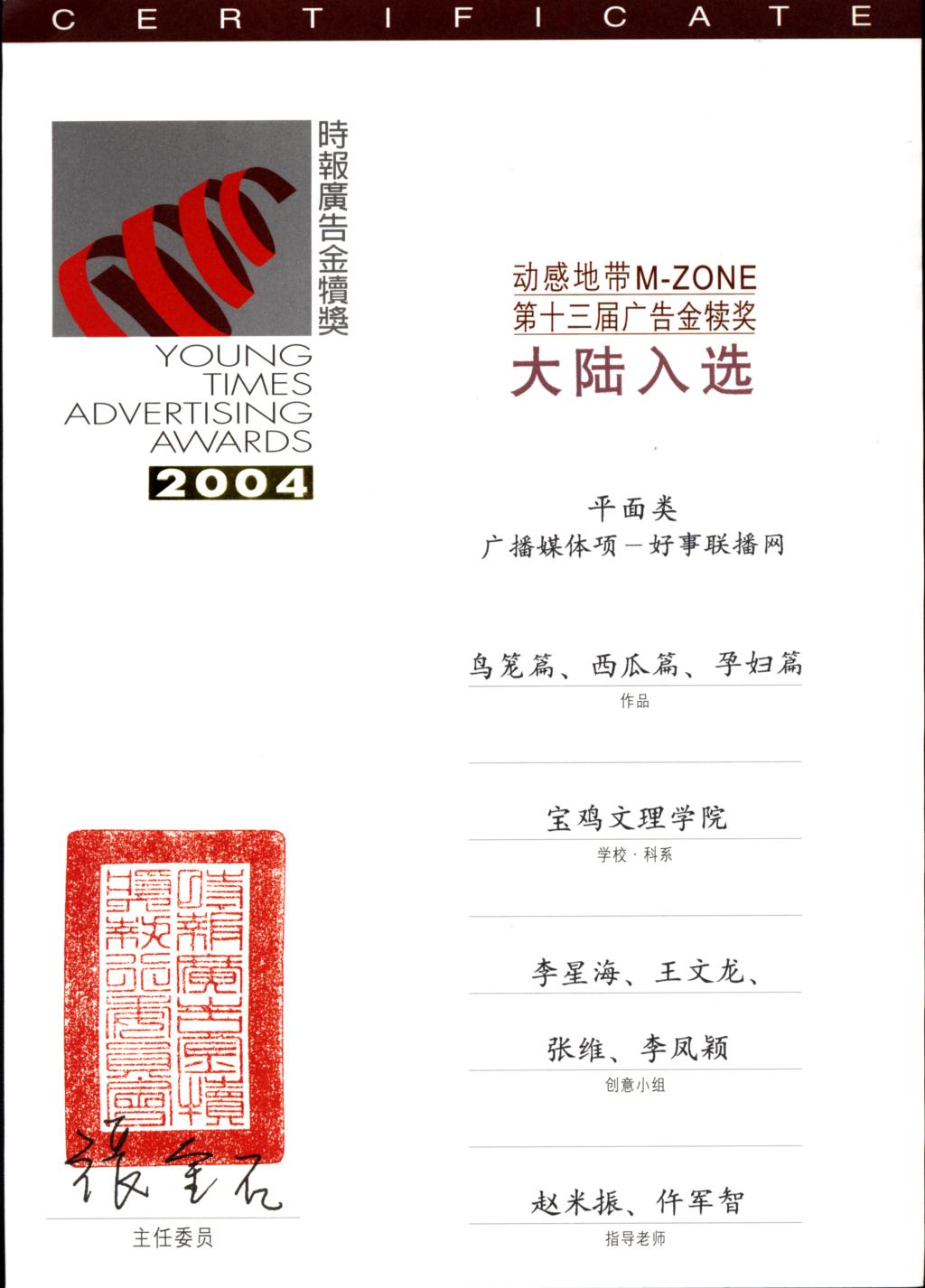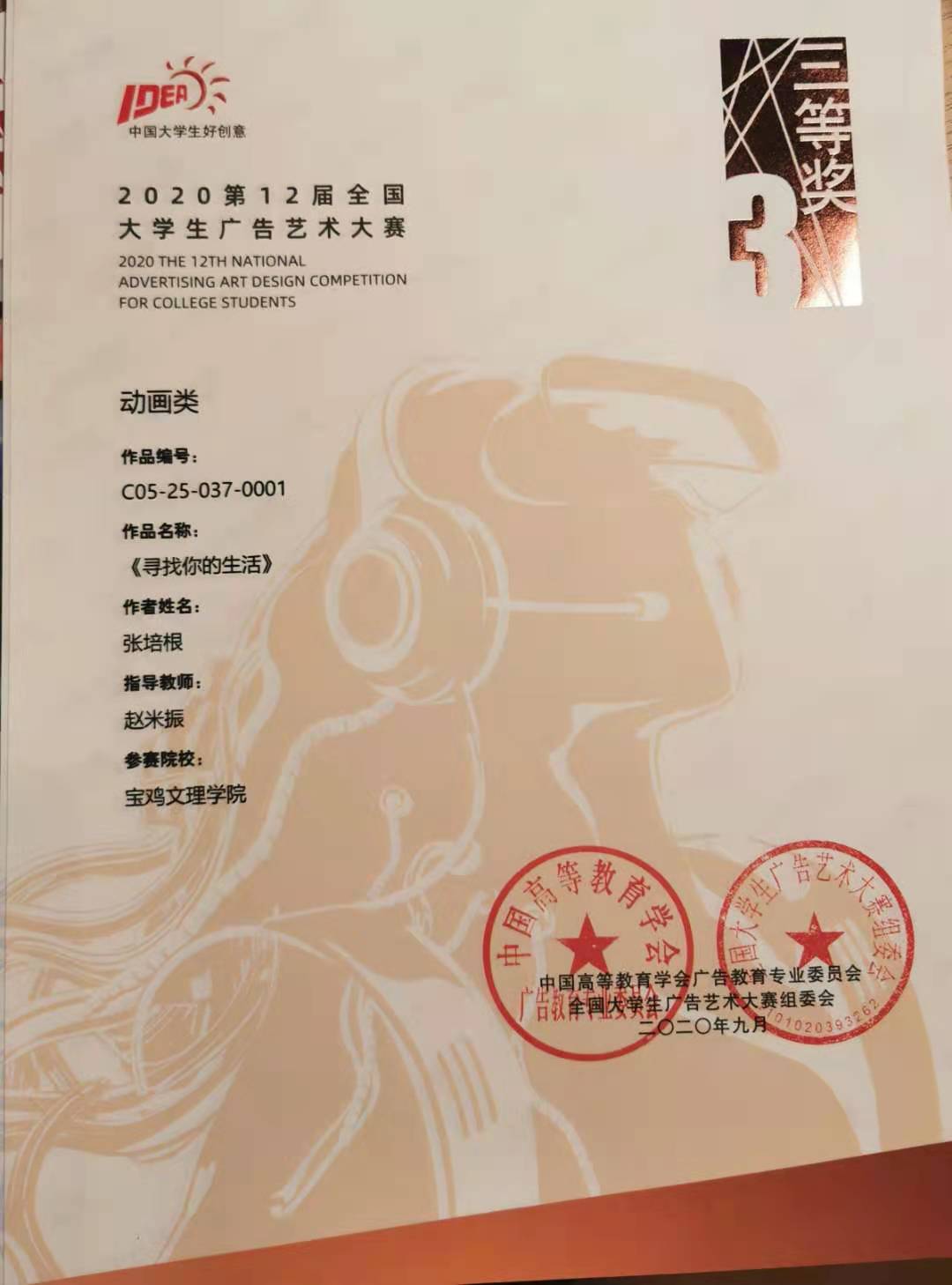从2003年开始,由伟德国际victor1946教务处、院团委、文传公司主办,广告教研室承办的“金鲤杯”伟德国际victor1946广告创意设计大赛已经成功举办20届,广告专业员工在历届广告大赛中都取得了优异成绩。尤其值得骄傲的是,2001级广告班员工刘艳,在2003年获第三届中国广告协会“公司奖”铜奖,这是西北地区高校中荣获等级奖的第一家;2002级员工王文龙、李星海、李凤颖、张维等同学获第十三届台湾时报“金犊奖”入选奖(“金犊奖”为世界华文圈公司派的最高奖项)。2014级员工张佳欣在2017年的中国老员工广告艺术节上获得等级奖,再次实现国家级大奖的突破。2018级员工张培根在2020年第十二届中国老员工广告艺术大赛上获得国家级三等奖,是时隔四年后广告专业的国家级大奖的又一次突破。自此之后,广告学专业的学子每年都能在国家级的老员工广告艺术大赛上斩获奖项。另外,04级、05级、06级、07级广告专业员工自编、自导、自演了《回归》《蜕变》《越狱》等多部影视短剧。