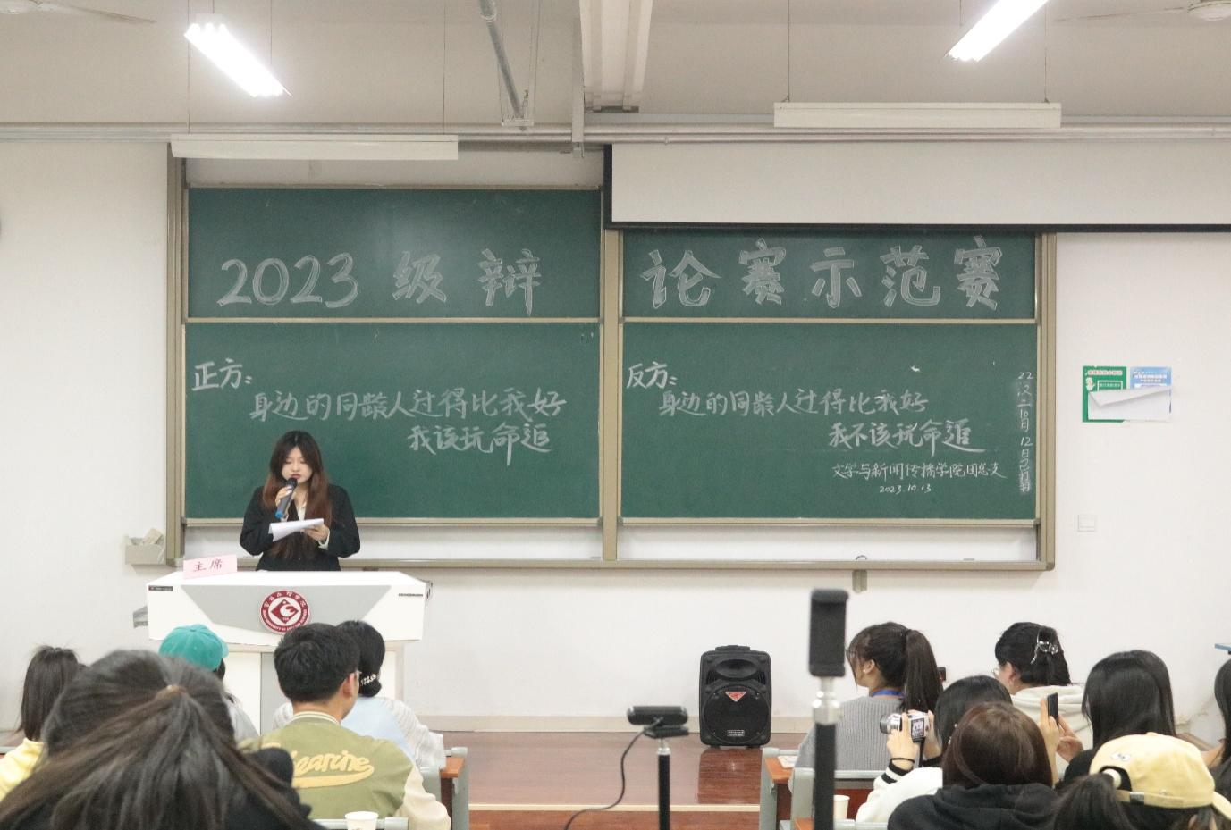 10月13日晚,伟德国际victor1946团总支在高新校区博文楼602教室举办了“激扬青春,与辩为友”新生辩论示范赛。公司23级各班员工代表在现场观看,其他同学通过微信、抖音平台观看了本次活动直播。