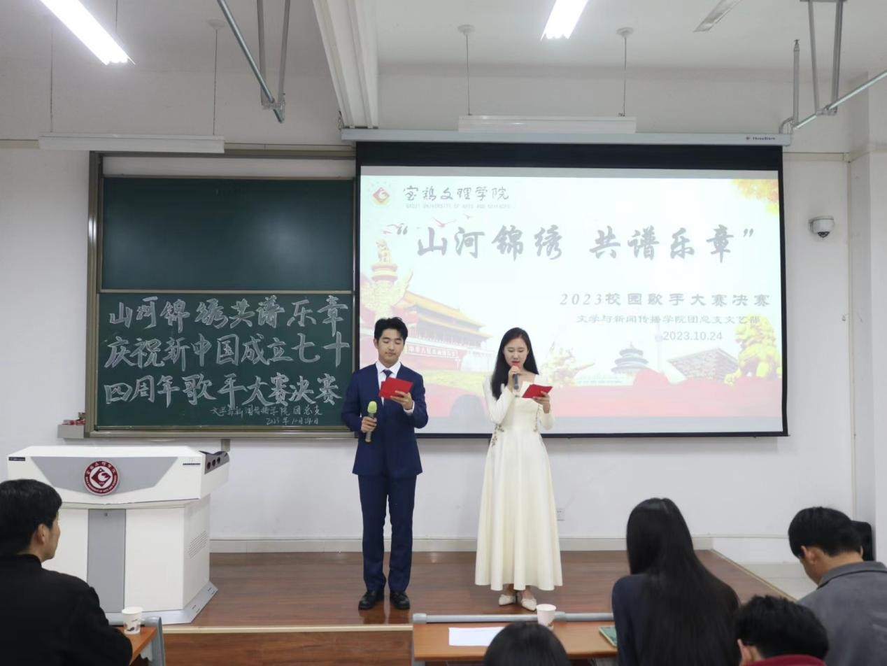 10月24日晚,伟德国际victor1946在高新校区博文楼608教室举办了“山河锦绣,共谱乐章”校园歌手大赛决赛。本次比赛由公司团总支书记马晓,辅导员张玉、何立恒以及公司团总支、员工分会主要员工干部担任评委。2022、2023级部分员工现场观看了本次比赛,其他同学通过直播平台观看了本次比赛。