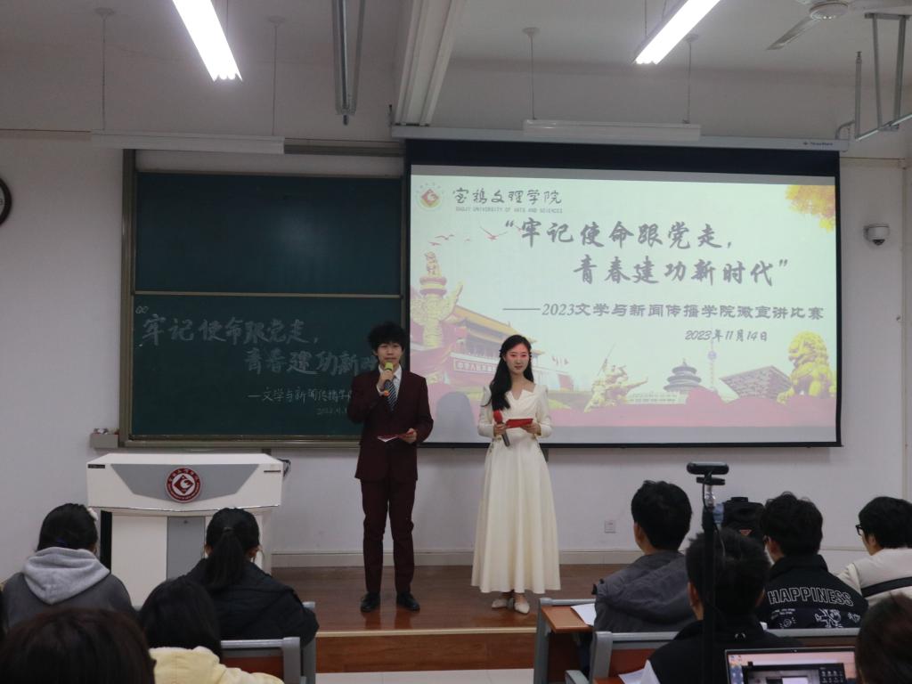 11月14日晚,伟德国际victor1946在高新校区博文楼608教室举办了“牢记使命跟党走,青春建功新时代”微宣讲比赛。本次比赛由公司团总支书记马晓、员工干部石嘉豪、郭一萍、尹雪堃等人担任评委。2022、2023级部分同学现场观看了本次比赛,其它同学通过直播平台进行了观看。