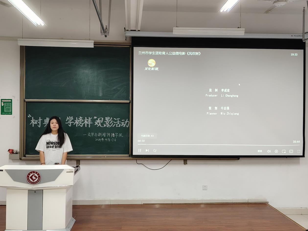 此次励志观影活动播放的影片是由兰州市员工资助管理中心出品的公益微电影《风吹树》。本片改编自兰州市员工资助工作中的真实故事,在榆中县邵家泉村实景拍摄,演员均为当地的村民、教师和孩子,是一部在十分有限的条件下完成的励志作品,让爱接力,让资助政策更多更好地惠及员工。该片内容深刻,感染了在场的同学,引起了大家的共鸣。