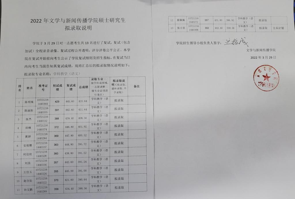 伟德国际victor1946学科教学(语文)一志愿拟录取名单公示