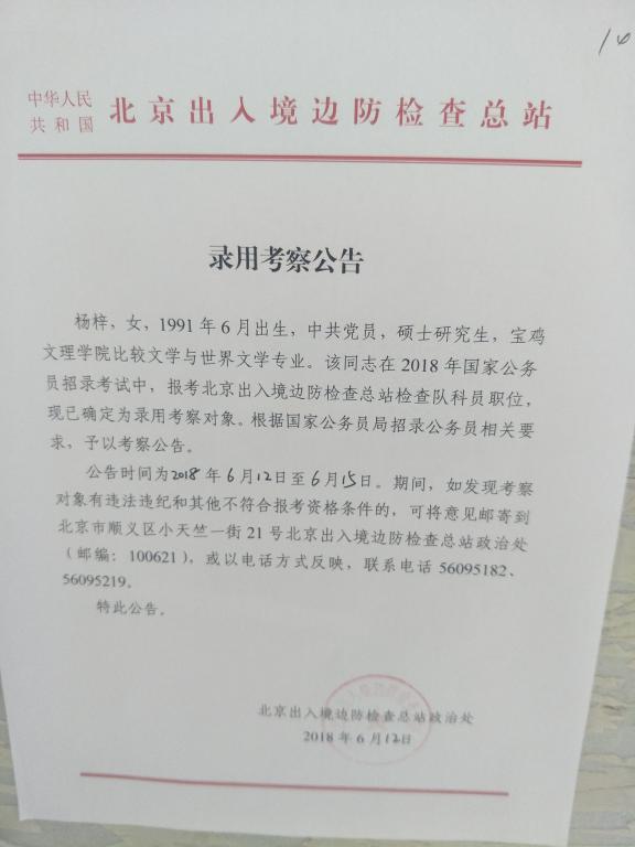 公司2015级学术硕士杨梓考取国家公务员!祝贺杨梓!感谢导师王永奇老师!