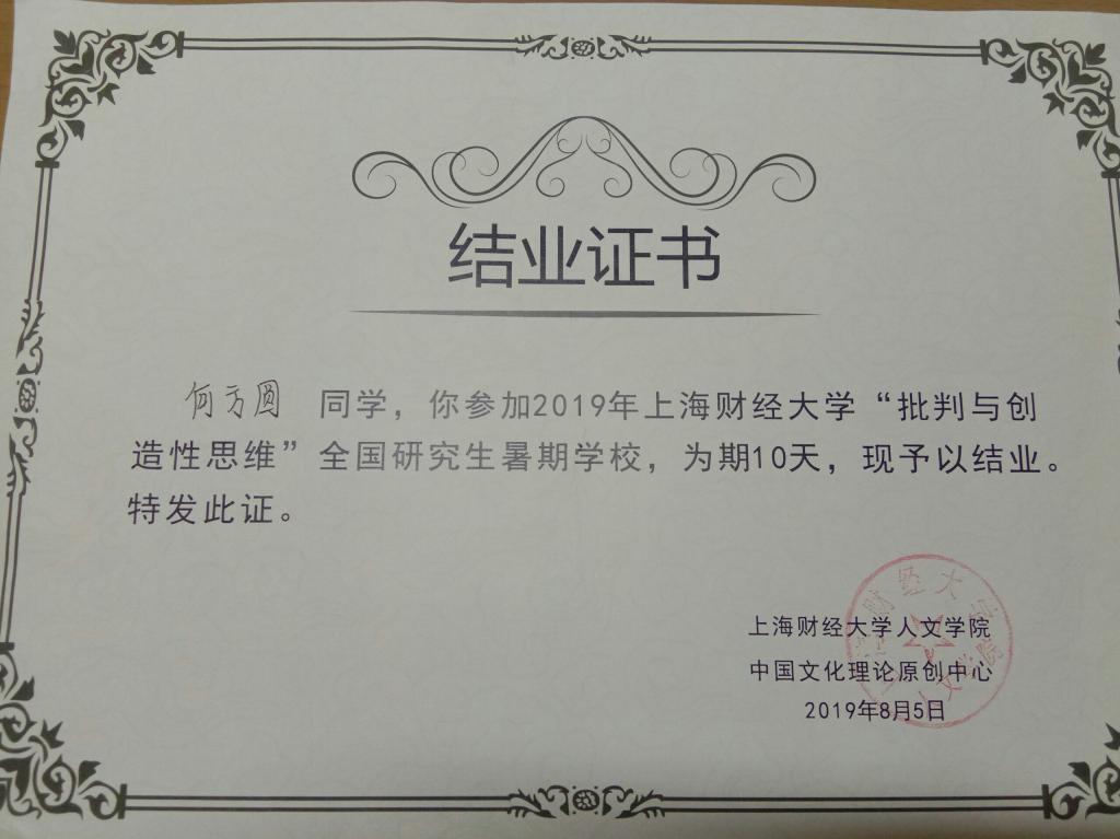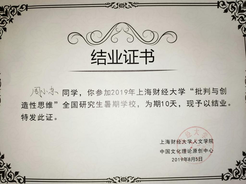 2019年7月27日—8月5日,经过个人携论文申报、主办单位严格遴选、公司指派,公司2018级中国现当代文学研究生周小东、何方圆参加了由上海财经大学人文公司主办的“批判与创造性思维”全国研究生暑期公司。来自中国社会科公司、南京大学、同济大学、中山大学等全国各地80余所大学的博士硕士生、青年教师共90余人参加了此次暑期公司学习、培训。