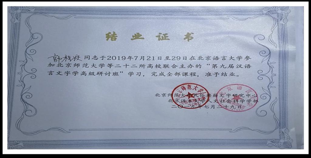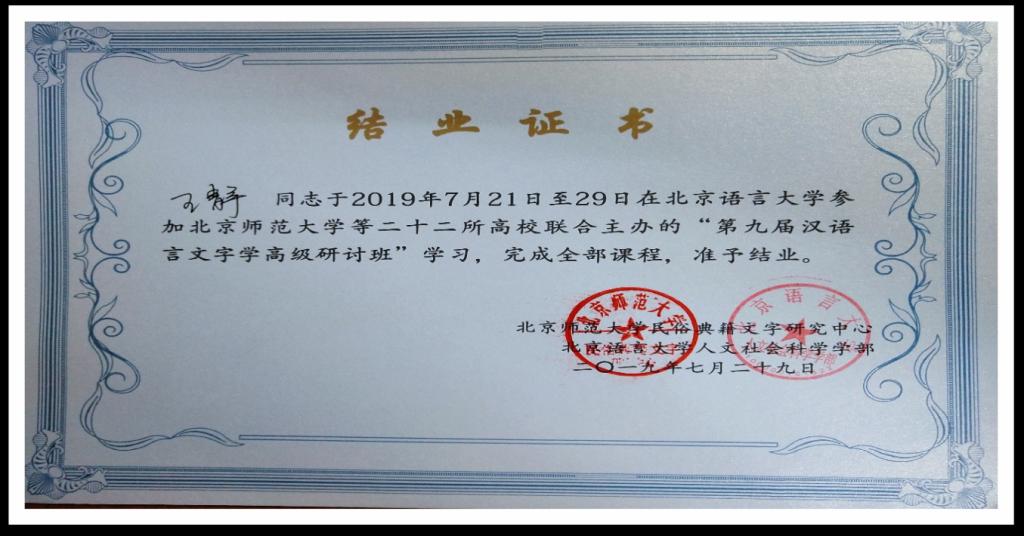 2019年7月21日—7月29日,由个人提交论文网上申报、主办单位严格遴选、公司指派,公司汉语言文字学研究生2017级郭程姣、2018级王静参加了由北京大学、北京师范大学主办、北京语言大学承办,主题为“新时代背景下的中国语言文字研究”的第九届汉语言文字学高级研讨班。来自海内外各大名校的博士、硕士研究生、青年教师400余人参加了研讨班。