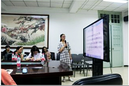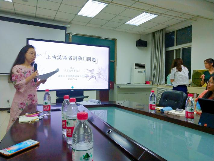 她们在晚上还积极参加了公司组织的学术工作坊。2018级王静在“上古汉语名动关系问题”工作坊中作了《以“贼”为例看动词的零形式名词化》主题报告,并得到北京大学博士后任荷老师、北京第二外国语公司万群老师的指导。