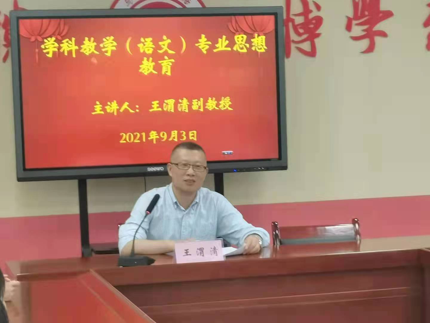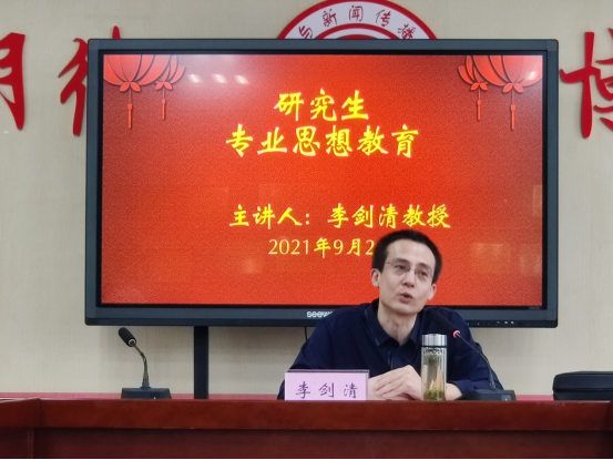 9月2日下午15:00,由中文系主任李剑清教授主讲第二场专业思想教育。