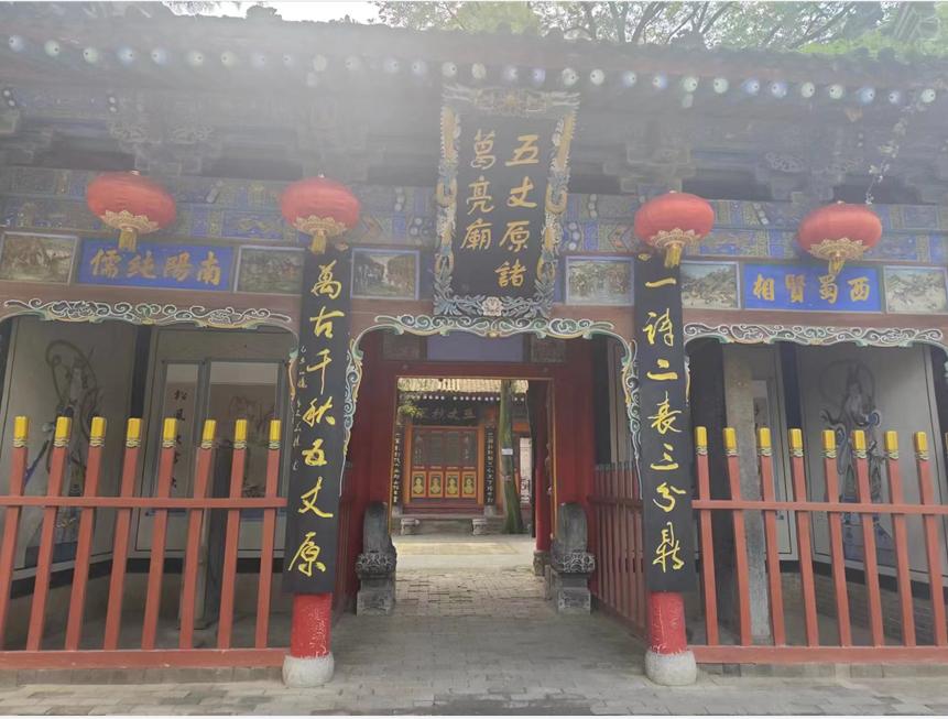 走进这座小且精致的诸葛亮庙,看着头上依次出现的“五丈秋风”、“英名千古”、“恭行天伐”等匾额,我仿佛看到的不仅是一位鞠躬尽瘁死而后已的千古一相,更是看到一位中国古代所推崇的追求理想、付身家国、修齐治平的优秀士人。真正的人格魅力和救世主张不仅只在案间笔头、理论主张,更体现在明知其不可而为之的勇气担当和立志以实践彰显理想的悲壮踏实。一路走过月英殿、落星石、文武廊,除了能感受到丞相生前死后的人格魅力外,我更能感受到岐山当地的文化氛围和淳朴虔信的民风。