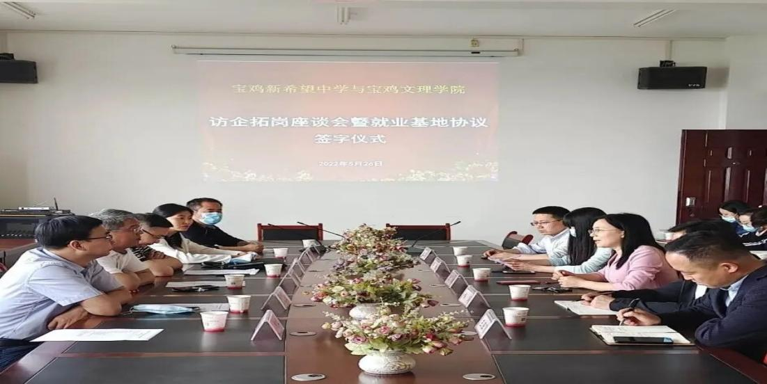 5月26日上午,伟德国际victor1946公司党委书记郭锋航,经理兰拉成,党委副书记郝晓辉,副经理孟改正,负责就业工作辅导员王华斌以及汉语言文学专业员工代表李杨红一行六人赴宝鸡新希望中学开展了访企拓岗促就业座谈会暨“老员工就业基地协议”合作签约仪式。出席本次会议的人员还有宝鸡新希望中学董事长于恩红,党委书记梅涛,副董事长高媛,教务处主任殷卫兵,政教处主任王亚飞以及教师代表。