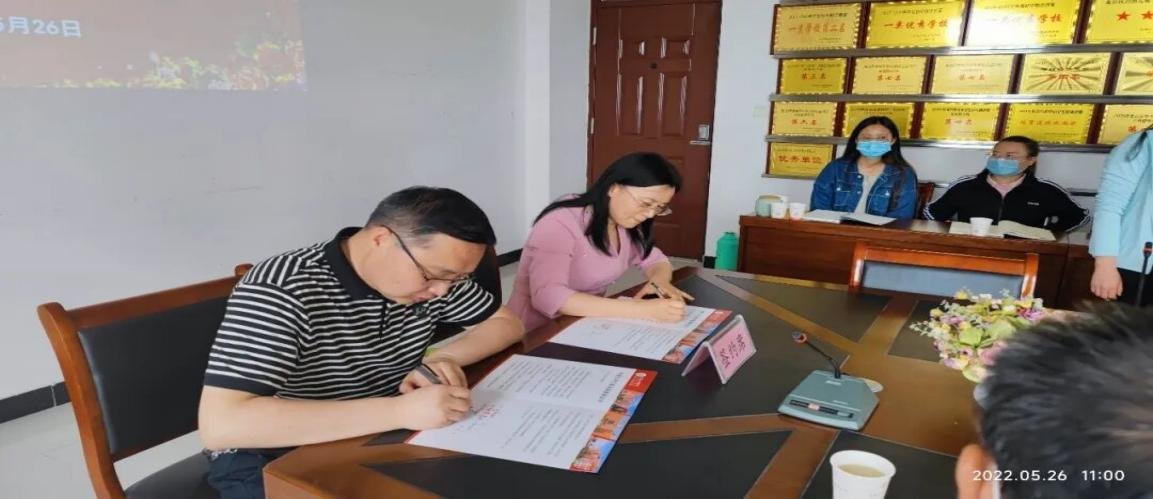 最后,文传公司党委书记郭锋航和新希望中学董事长于恩红代表参会双方签订了“共建老员工就业基地协议书”。