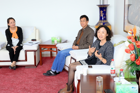 王虹对母校近年来取得的成绩感到振奋,她深情地回顾了20多年前在母校度过的令人难忘的美好时光。她说,毕业后无论在哪个岗位都非常关心和关注母校建设和发展,这是一种难以忘怀的母校情结。她向母校领导和老师汇报了自己20多年来的工作经历,并结合工作实际,从专业实践的角度发表了自己对人才培养的认识。她就建立实习基地与校领导和与会老师交流了意见,并表示愿意与公司进行合作,也愿意通过努力为公司建设和发展贡献绵薄之力。同时,希望公司能推荐优秀人才支持画报社的发展。