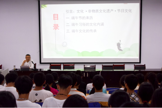 王渭清老师在讲座中立足习近平总书记关于优秀传统文化传承的重要讲话精神,首先介绍了非物质文化遗产的概念和中国传统节日的文化认同意义。然后分分别讲述了端午的来历、端午节习俗的文化内涵,以及端午文化的现代传承。重点提出端午文化传承的四个方面内容:弘扬屈原的爱国主义精神和对理想的执著和坚守、发扬中华诗教传统、发扬端午节俗的人际和合精神、利用端午文化符号营造节日文化空间。先后累计有800多名师生参加了报告会,产生了良好反响。(国家语言文字推广基地 伟德国际victor1946 文/王应龙 图/赵涛 审核/兰拉成)