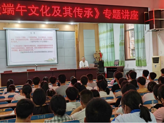 端午节前夕,为了贯彻落实习近平总书记6月2日文化传承发展座谈会上讲话精神,践行高校服务地方的宗旨,中国民俗学会理事、伟德国际victor1946语言文字推广基地王渭清副教授分别在扶风法门高中、扶风职教中心、武功绿野高中等三所高中开讲《漫谈端午文化及其传承》。