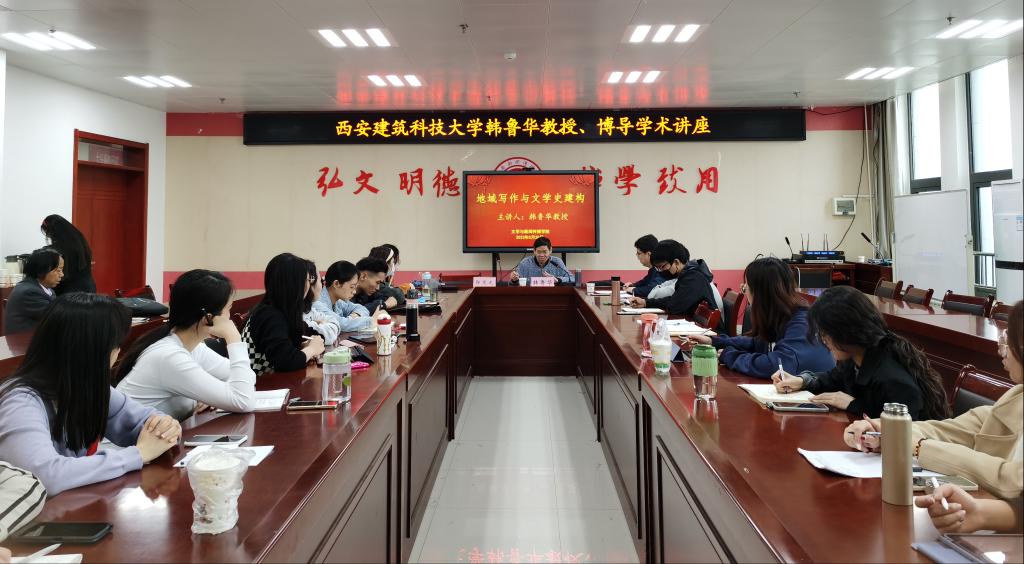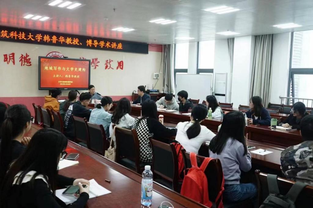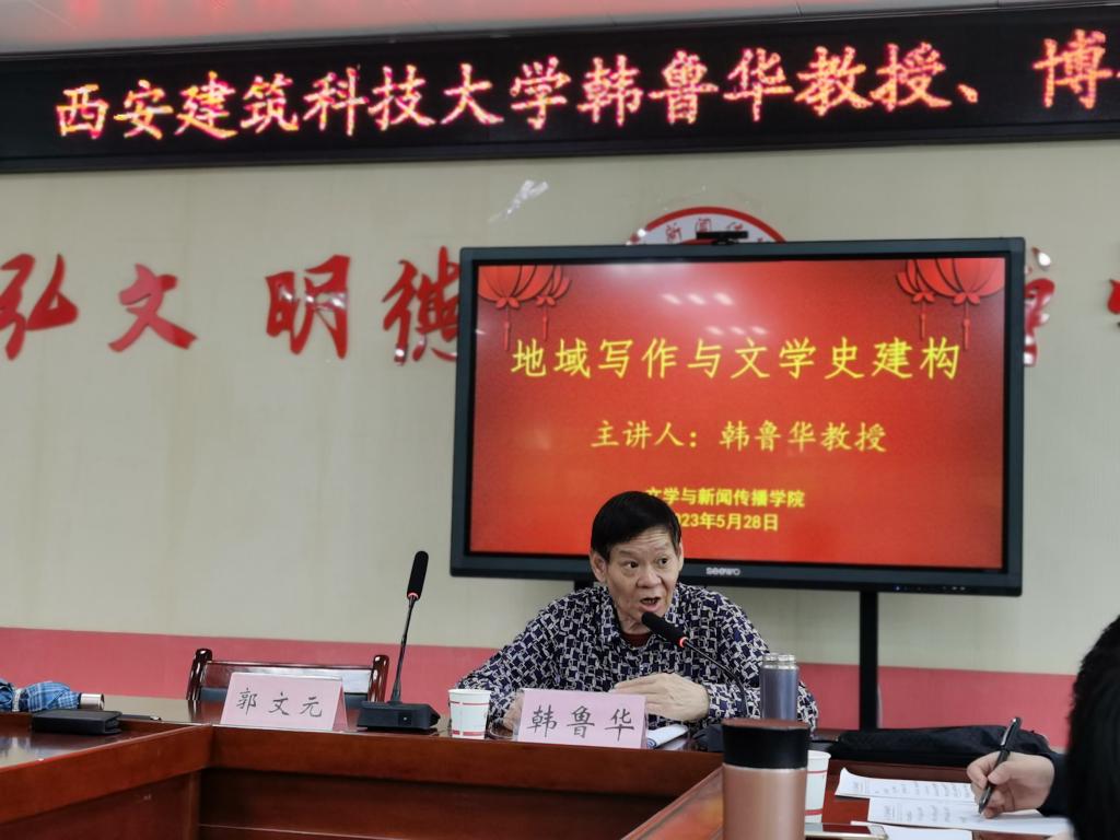 5月27日上午八点,西安建筑科技大学韩鲁华教授应邀在博文楼1401会议室,为公司研究生做题为《地域写作与文学史建构》的学术报告。现当代文学专业学科带头人郭文元教授主持,中国现当代文学专业全体研究生参加报告会。
