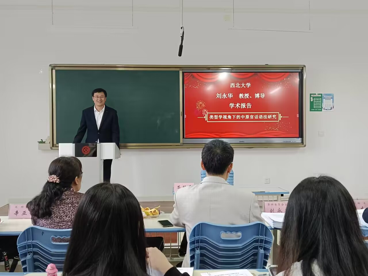 接着,刘永华教授开始题为《类型学视角下的中原官话语法研究》的学术报告。刘永华教授首先为师生介绍了何为类型学,类型学有那些学派。通过刘永华教授的讲解,让师生更加深刻的体悟到:“脑子新,什么都是新的。” 刘永华教授的新视角、新方法给了师生很大的启发。