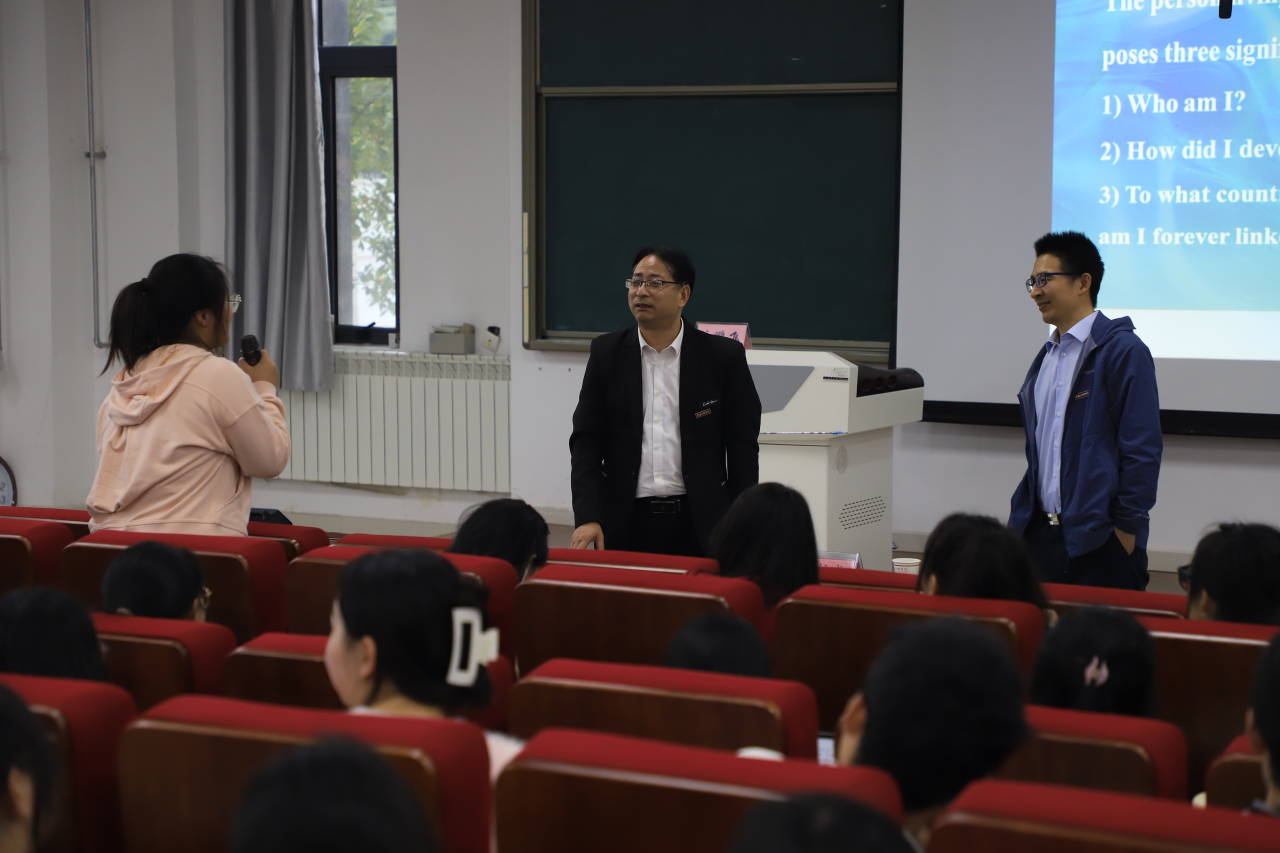 然后,谷鹏飞教授以“坏的目的带来好的结果,好的目的带来坏的结果”这两种情况为例,介绍了东西方文明的差异:以结果为评判标准还是以目的为评判标准。谷鹏飞教授也简要介绍了东西方不同的价值形态,启发同学们进行思考。