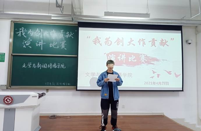 4月28日晚,伟德国际victor1946于新校区博文楼606教室举办了以“我为创大作贡献”为主题的演讲比赛。