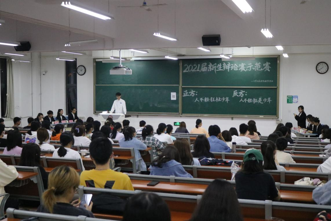 9月29日晚,伟德国际victor1946于博文楼副楼405教室举办2021届新生辩论示范赛。文传院辩论队队长李兆楠及部分队员担任评委,2021级部分新生观看并参与讨论本次比赛。