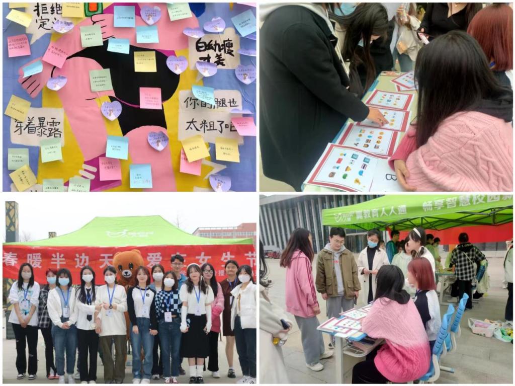 在“拒绝恶意”这一环节,同学们撕下展板上原有的束缚女性的便利贴,留下写给自己的励志话语、写给朋友和家人的美好祝福。路过此处的同学,都会驻足停留一番,感受这份简单美好的温暖。