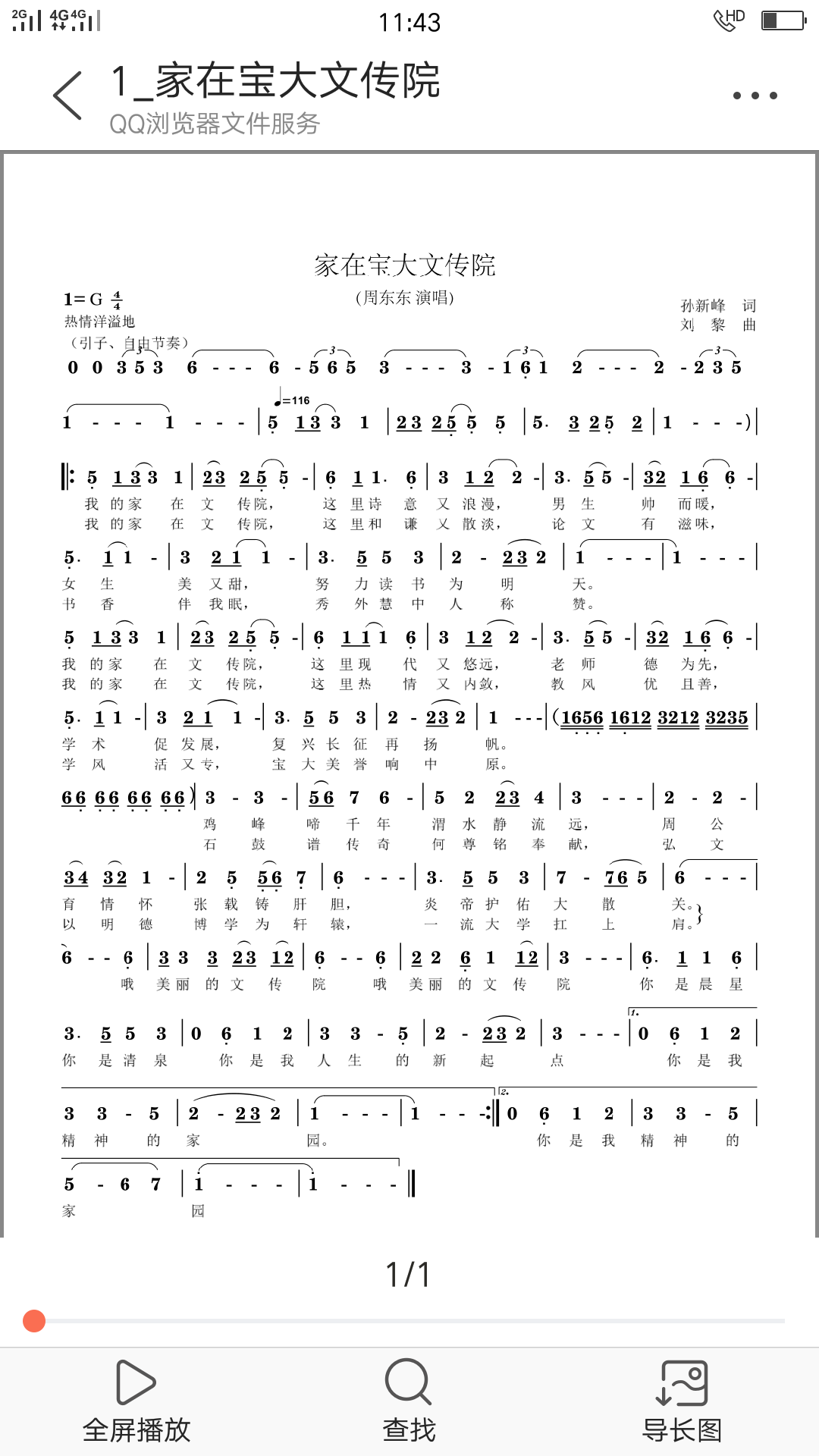 附:《家在宝大文传院》(试行)歌词、曲谱、演唱版本之一。