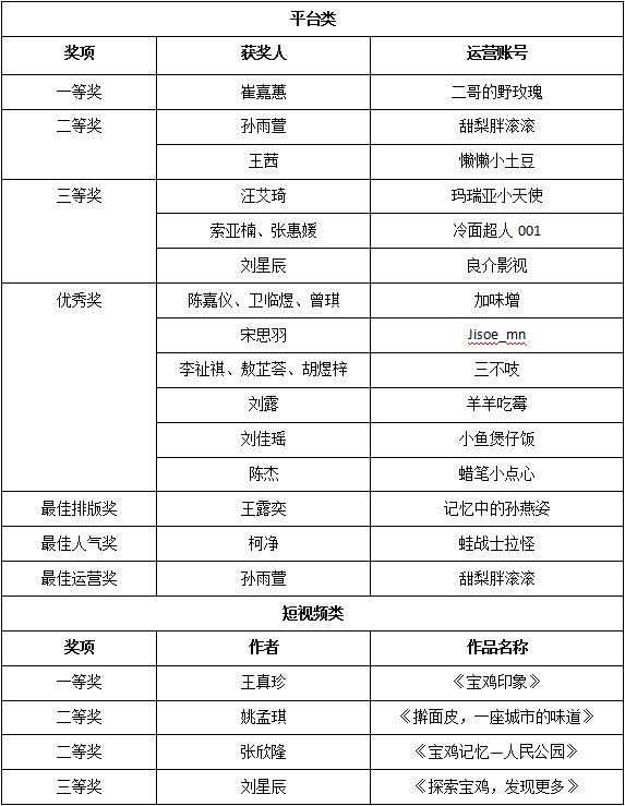 第五届金“Media”杯新媒体创意大赛获奖名单