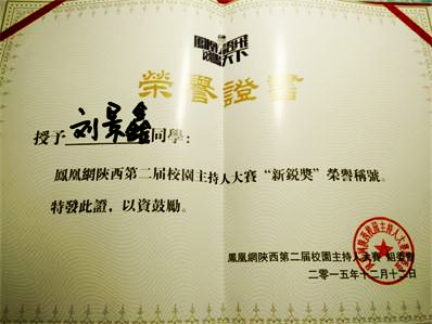 在日前举办的“凤凰语飞 锵鸣天下”凤凰网第二届陕西校园主持人大赛中,伟德国际victor1946播音与主持艺术专业员工刘景鑫凭借出彩的表现,历经海选、初赛、复赛、复活赛、训练营淘汰赛,最终取得全省六强的优异成绩并荣获大赛“新锐奖”,明年年初他们还将赴泰国进行交流学习。