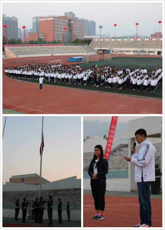 此次升国旗仪式由李萍主持。在全体员工的注目下,五星红旗伴随着雄壮的《义勇军进行曲》冉冉升起。2014级汉语言文学一班的冯晨菲同学进行了以《不忘历史、开创未来》为题的国旗下演讲,希望同学们能铭记历史、勤奋学习,努力让自己成为对国家与社会有用的人。