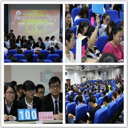 本次知识竞赛活动共有六支队伍参加,竞赛采取抽签排序进行答题,分必答题、抢答题、风险题三个环节进行,主要内容是党的十八大、十八届三中、四中全会精神、习近平总书记系列重要讲话、2015年全国“两会”精神及校情校史等知识。竞赛现场气氛高涨,选手们思维敏捷、逻辑清晰,赢得观众阵阵掌声。