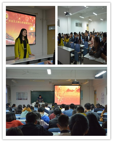 3月31日晚,伟德国际victor1946于思贤楼304室举行社会主义核心价值观宣讲会。文传公司团总支书记李萍、全体员工干部及2014、15级各班员工代表参加了此次会议。
