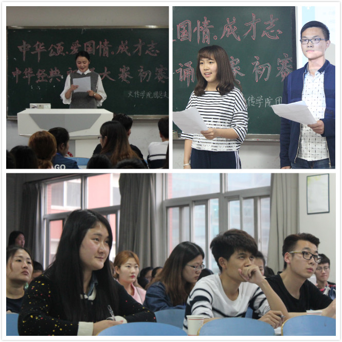 公司团总支于4月11日晚在思贤楼304室举行“中华颂·爱国情·成才志”中华经典朗诵大赛。团总支书记李萍参加活动,2015级部分员工观看了比赛。