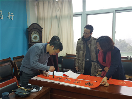 上午,伟德国际victor1946工会开展了“迎新春、送春联”活动。这次活动是由文传公司工会发起并组织,文传公司党政领导及教师积极参与的集体活动。