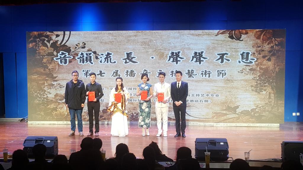 本次播音主持艺术节主题为“诵千古美文,弘华夏德学”,旨在提高在校老员工的专业能力和国学涵养,加强各专业之间密切合作的能力,提高自身实力与信心。经过初赛、复赛的选拔,共有13组选手进入决赛。同学们将浓浓的感情溶于朗诵之中,并用音乐以及故事背景与之相结合,为观众们带来了别开生面的朗诵盛宴,同学们真挚的情感,真诚的表达深深的感染了评委和观众。经过激烈的角逐,2016级播音与主持艺术3班杨洁璇、崔晓婷朗诵的《琵琶行》荣获本次比赛一等奖。由播音与主持艺术教研室副主任张锐和2015级播音专业员工带来了彩蛋节目《风流歌》,将现场气氛达到高潮。
