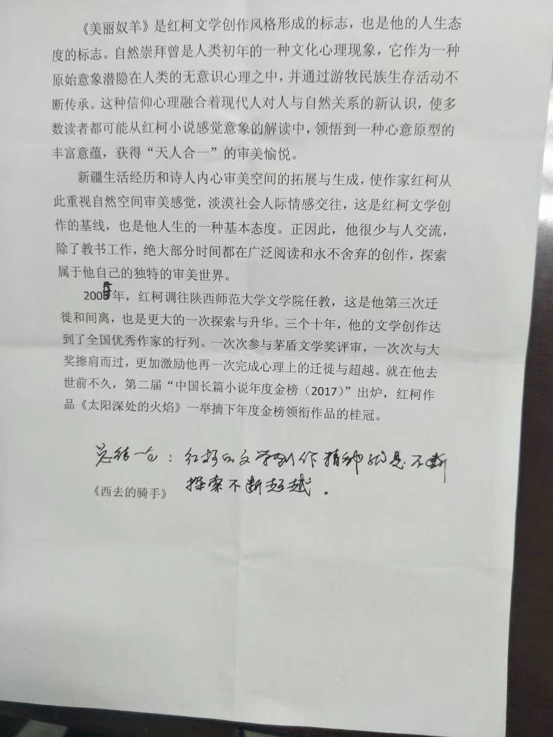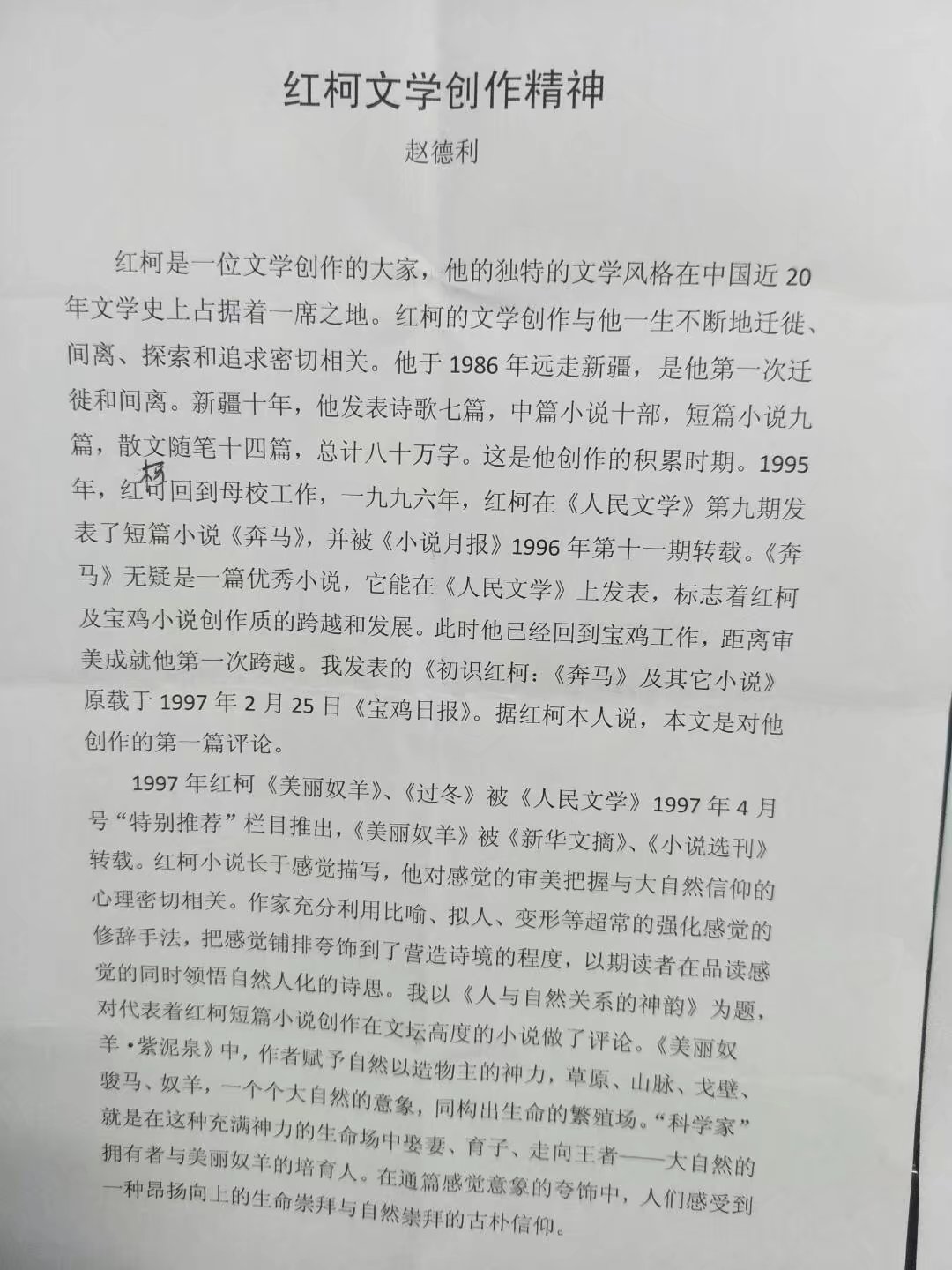 红柯同事、二级教授赵德利先生在红柯追思会上的发言(照片)