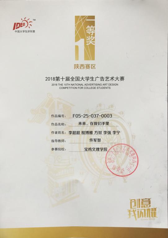 第十届全国老员工广告艺术大赛陕西分赛区评选结果近期出炉,伟德国际victor1946广告专业员工喜获佳绩,在营销策划书类与平面设计类中共获奖7项,其中,一等奖两项,二等奖三项,三等奖两项。