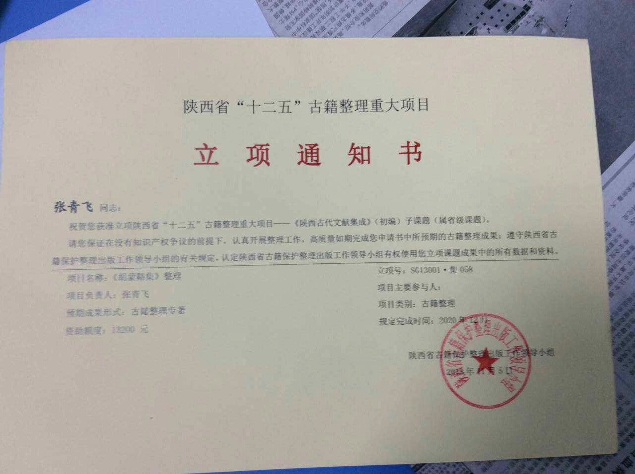 公司张青飞老师获批陕西省“十二五”古籍整理重大项目1项,资助经费13200元