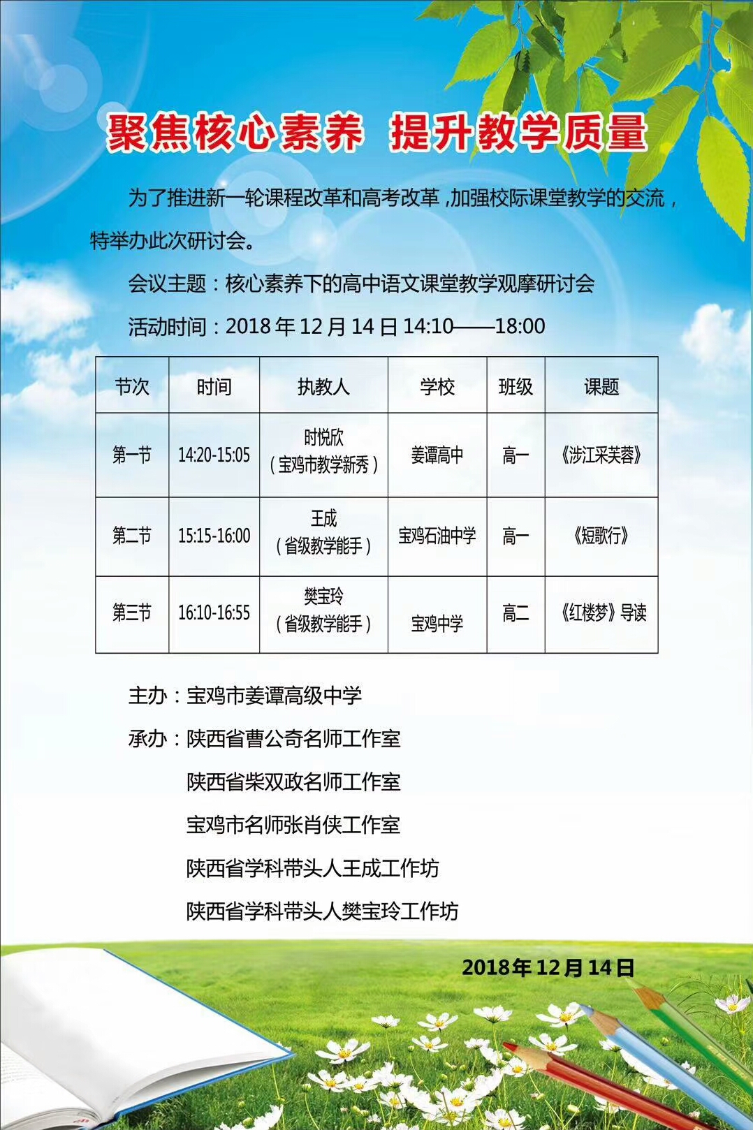 2018年12月14日下午,公司8名2018级学科教学(语文)硕士,在班长苗盼盼同学带领下,赴姜谭联中进行了《核心素养下的高中语文教学》系列观摩学习。