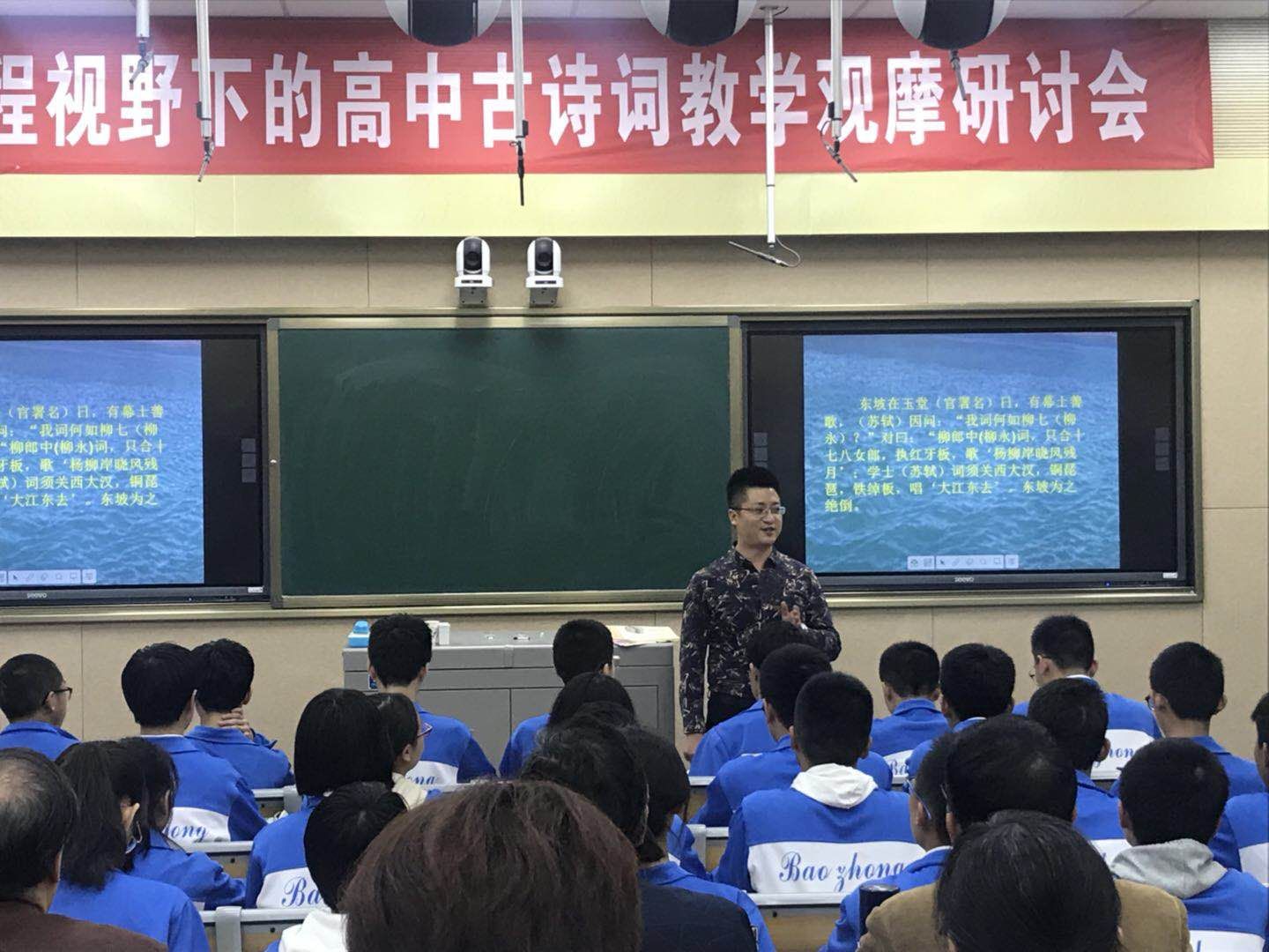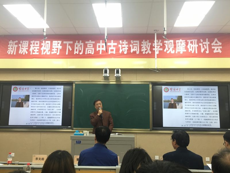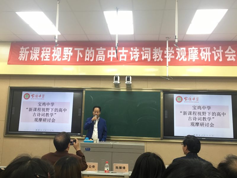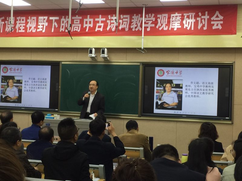 2019年4月9日下午2.00,公司师范生素质实训中心主任、专硕研究生导师王渭清老师带领18级全体语文教育硕士参加了宝鸡中学举办的新课程视野下的高中古诗词教学观摩研讨会。收获颇多,启发良多。