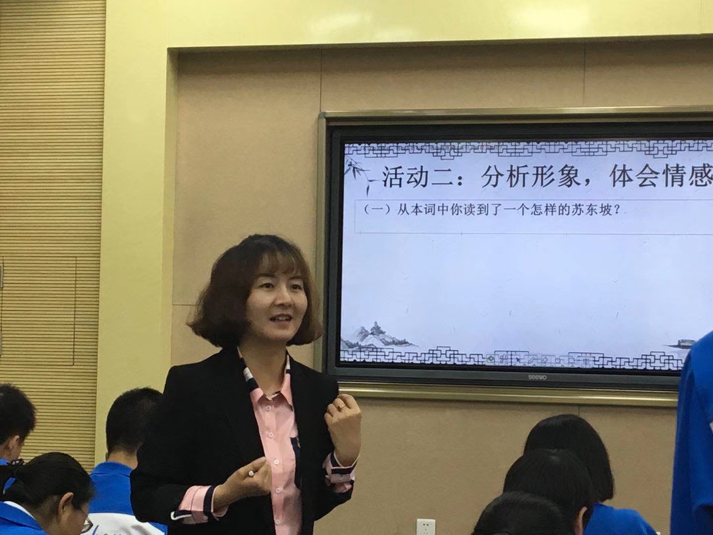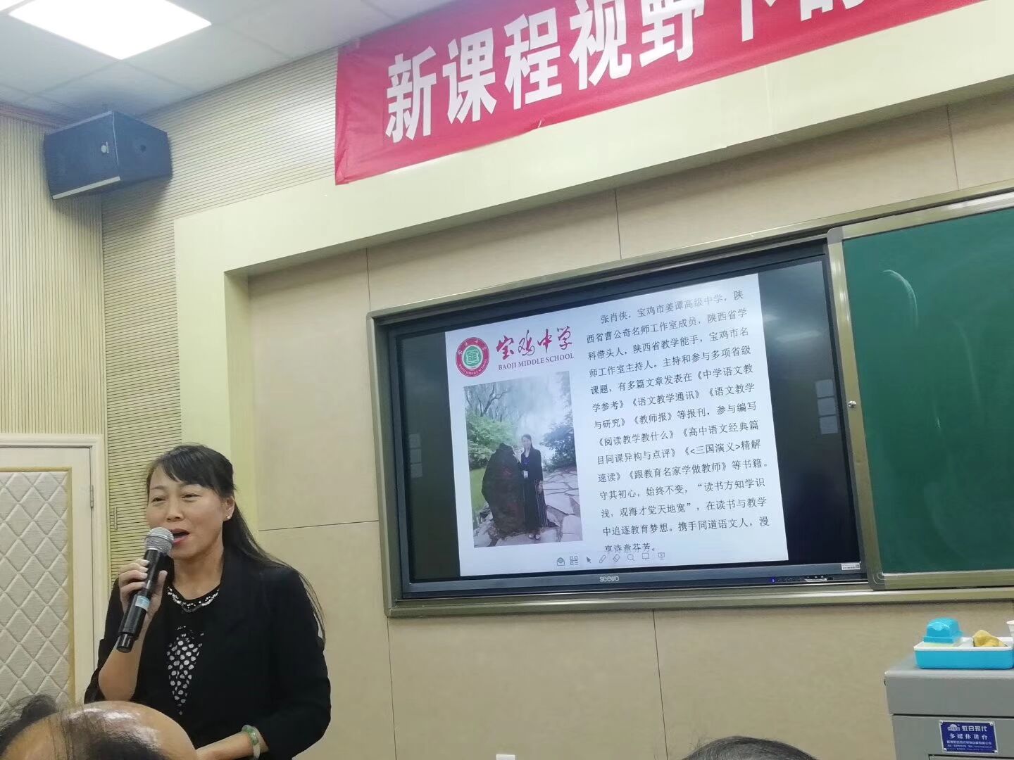 宝鸡中学樊宝玲老师讲示范课 第三节示范课:宝鸡中学樊宝玲老师讲授的《定风波》,樊老师注重让员工就文本细微处进行深入的品味和感悟,来体会苏轼情感。带领员工由学本词到学苏轼一组的词,来理解体会苏轼的心路历程。本节课知识面宽、有深度、有高度。