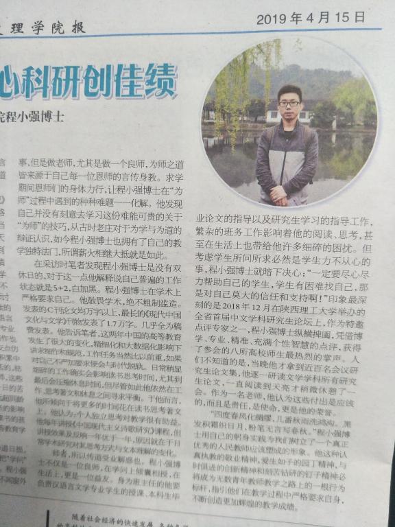 师者,所以传道受业解惑也。程小强老师不仅是一位良师,在学问上倾囊相授,在生活上,更是一位益友。身为班主任的他要负责汉语言文学专业员工的授课、本科生毕业论文的指导以及研究生学习的指导工作,繁杂的班务工作影响着他的阅读,思考,甚至在生活上也带给他许多细碎的困扰。但考虑员工所问所求必然是员工力不从心的事,程小强老师就暗下决心,一定要尽心尽力帮助自己的员工,员工有困难找自己,那是对自己莫大的信任和支持啊!印象最深刻的是2018年12月在陕西理工大学举办的全省首届中文学科研究生论坛上,作为特邀点评专家之一,程小强老师纵横捭阖,凭借博学、专业、精准、充满个性智慧的点评,获得了参会的8所高校师生最热烈的掌声。人们不知道的是,当晚他才拿到近百名会议研究生论文集,他逐一研读文学学科所有研究生论文,一直阅读到天亮才稍微休憩了一会。作为一名老师,他认为这些付出是应该的,而且是责任,是使命,更是他的荣誉。
