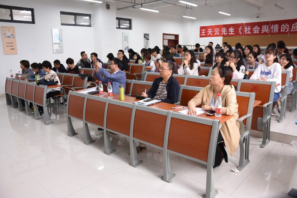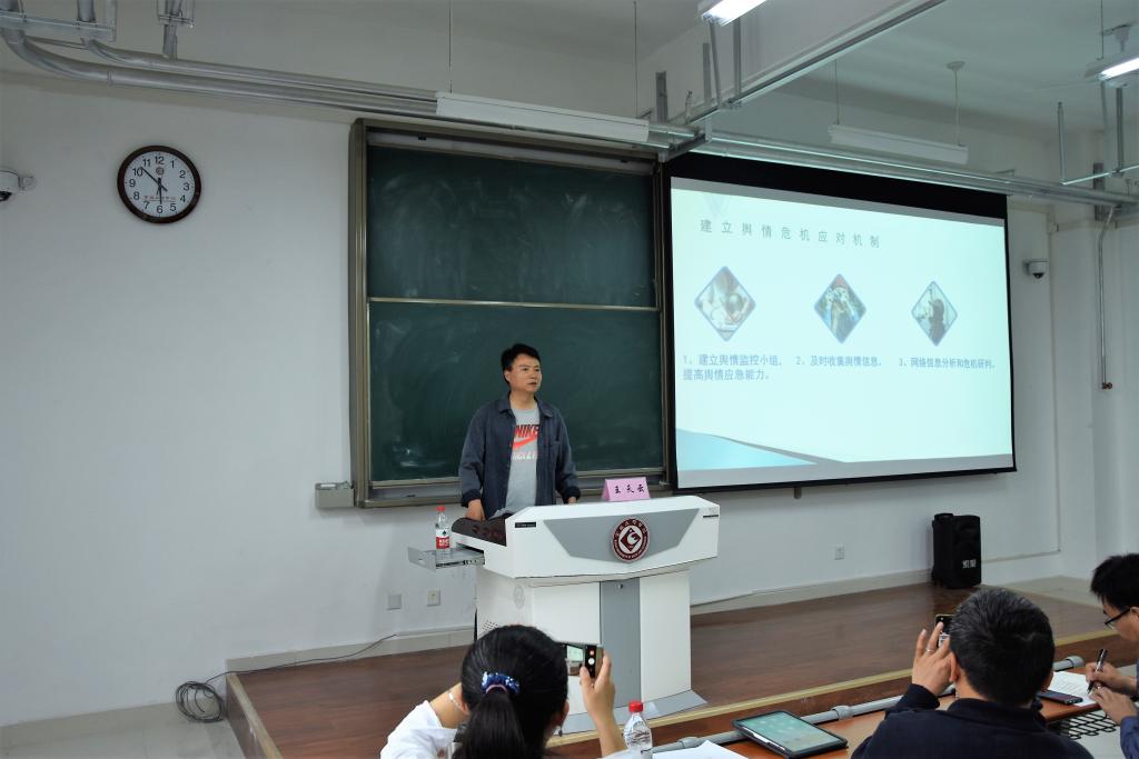 王科长的报告以大量鲜活、真实的案例为辅助讲解,这让同学们更加直接全面的接触到社会舆情的方方面面,同时王科长也在理论与实践上向同学们传授了丰富经验,进行了具体的指导。