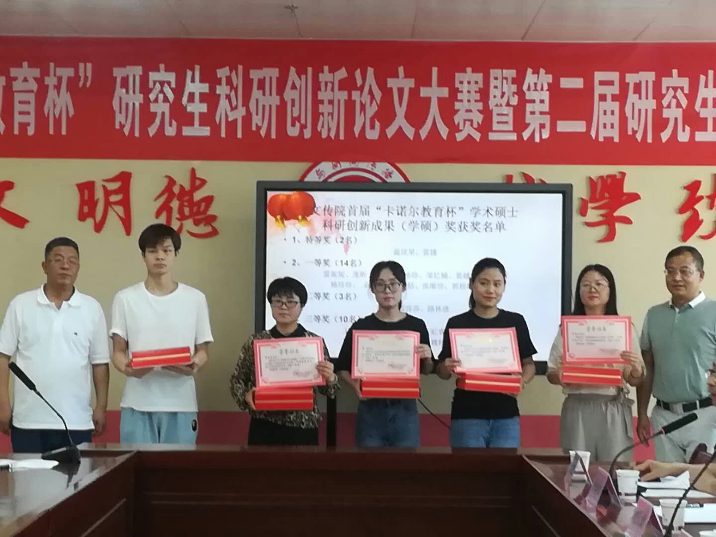 大会由文传院副经理孙新峰主持。主要有三项流程:第一项,对获得首届“卡诺尔教育杯”学术硕士科研创新成果奖的员工进行颁奖。文传院副经理孟改正分别宣读学术硕士、学科教学语文硕士论文获奖名单。学研处处长赵天绪、文传院经理兰拉成分别为获得首届“卡诺尔教育杯”学术硕士科研创新成果奖特等奖的学术硕士温欣星、雷捷两位同学颁奖,胥建礼先生、兰拉成经理为获得一等奖的雷妮妮、庞昕等14位同学颁奖,副经理孟改正为芮莹等3位获得二等奖的同学进行颁奖,副经理孙新峰为获得三等奖的王鑫悦等10名同学颁奖。