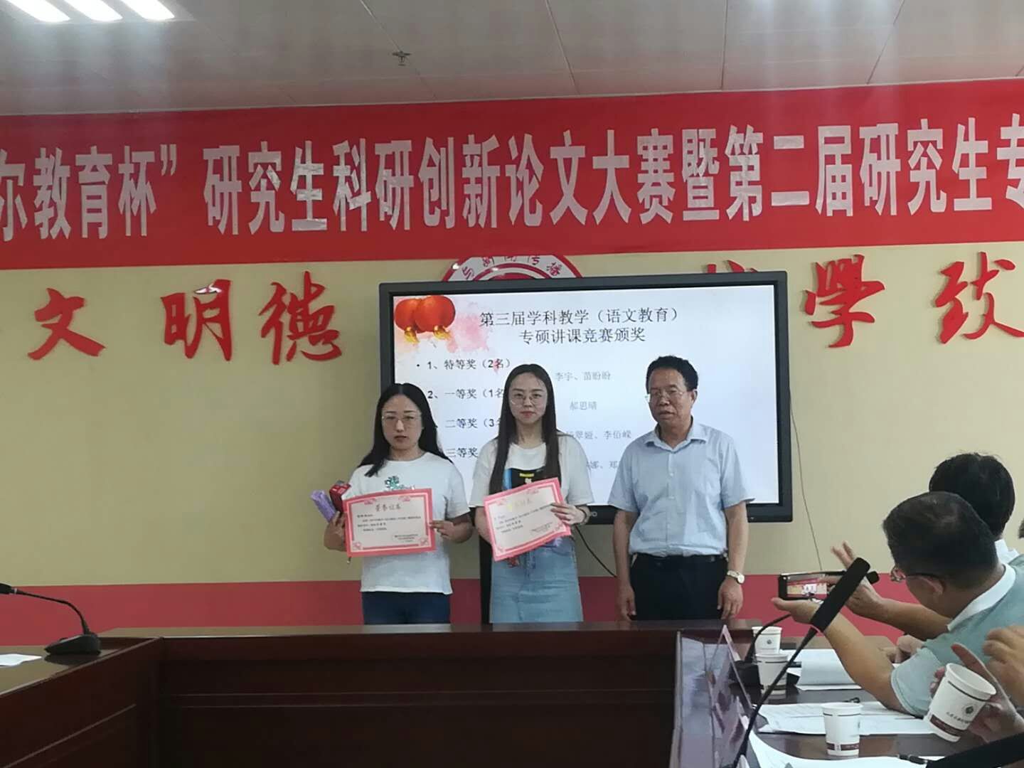 兰拉成经理、胥建礼先生为获得论文一等奖的专硕研究生颁奖 |