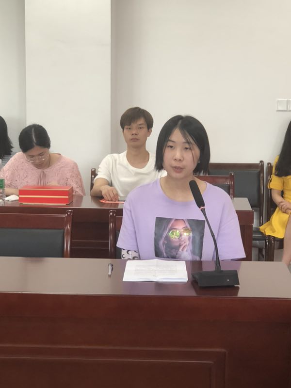 颁奖间隙,文传院副经理孙新峰还为今年参加博士生考试的研究生、论文获奖的研究生、读书之星、教学之星等撰写了授奖词,2018级专硕李佰嵘同学代为宣读。2017级中国现当代文学专业硕士温欣星代表所有获奖者做了表态发言。温欣星表示“获奖不是终点,是新的起点、新的向学术高地进军的起点。”