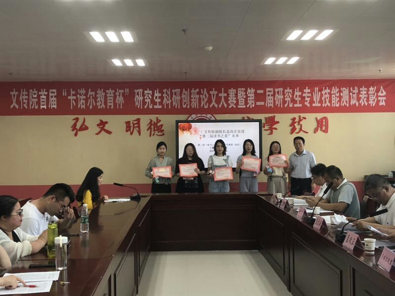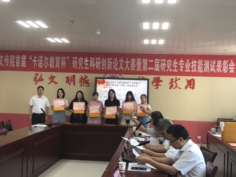 6月3日下16:30—18:30,伟德国际victor1946在博文楼1401会议室召开"首届‘卡诺尔教育杯’研究生科研创新论文大赛暨第二届研究生专业技能测试表彰大会”。团队建设与研究生教育管理处处长赵天绪、特邀嘉宾、“卡诺尔”教育集团董事长胥建礼先生、文传院经理兰拉成、副经理孙新峰、副经理孟改正以及全院在校研究生60余人参加了大会。