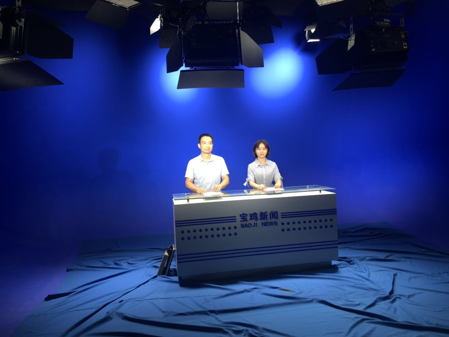 电视台演播室就是我们平时看到的直播和录制节目的地方,一位主持人正在录制新闻,我们亲眼目睹了电视新闻的制作流程,了解了专业工作的艰辛。