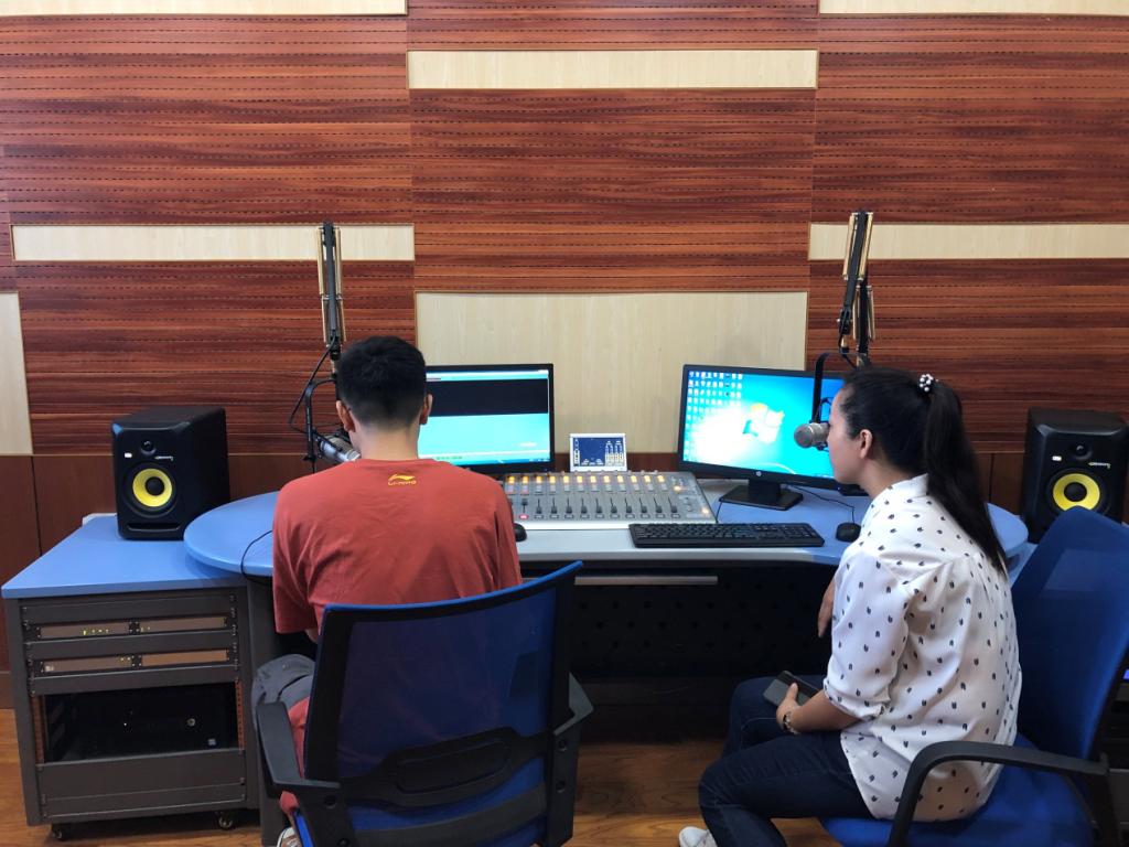 宝鸡电台赵台长、王主任以及经济频道文婷主播首先接待了我们,热心的工作人员还让同学们体验了一回电台主播的录播现场。