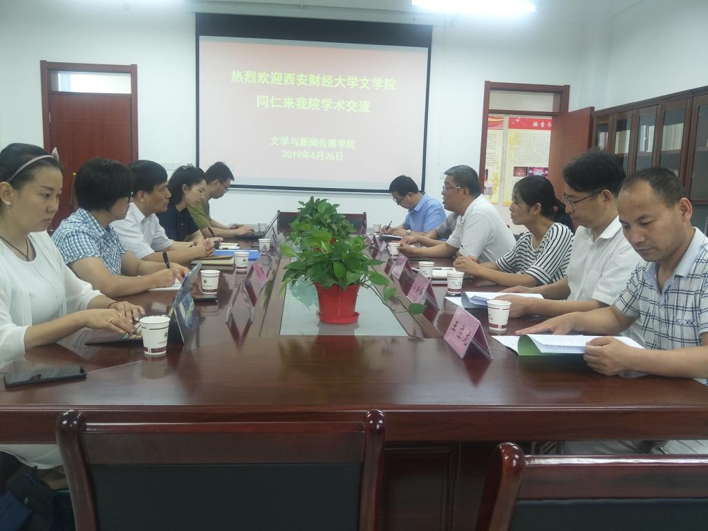 6月26日下午,西安财经大学文公司经理李忠昌、副经理张颖、中文系主任张璐、文学研究中心副主任宋宁刚博士、鲁小燕老师等一行5人,前来公司文传院进行学术交流。交流会于15时在博文楼1416会议室召开,文传院经理兰拉成主持。文传公司党总支副书记郝晓辉、主管教学工作副经理孟改正、主管科研和研究生工作副经理孙新峰,以及考研指导中心主任姚军、语言学教研室主任王应龙等参加了交流。