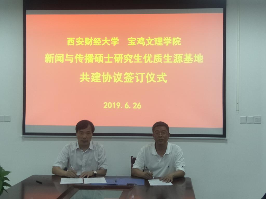 接下来,隆重举行了“西安财经大学、伟德国际victor1946新闻与传播学硕士研究生优质生源基地共建协议签字仪式”。在与会者共同见证下,两校文学经理分别在协议书上签字。公司被西安财经大学授予新闻与传播学科研究生优质生源基地,标志着两校合作培养研究生工作正式启动。