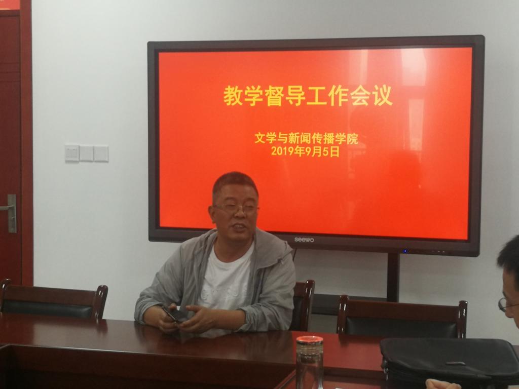 组长兰拉成经理总结2018——2019学年第二学期督导工作,高度肯定各位督导的工作,指出督导组成员保质保量完成听、评课任务,完成各项专项检查任务,尤其在汉语言文学专业认证过程中,发挥重要作用。副组长李剑清教授安排本学期督导工作,宣读督导分组名单,两人一组,确保开展本学期的教学督导工作。